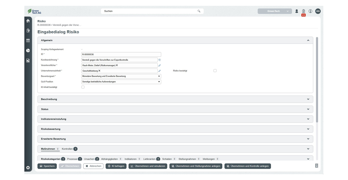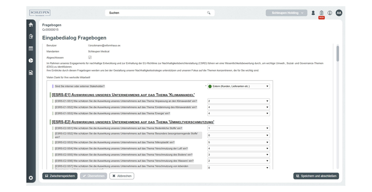 Schleupen GRC ist eine vollständig integrierte Plattform für Governance, Risk & Compliance, die alle zentralen Steuerungsbereiche in einer gemeinsamen, revisionssicheren Datenbasis zusammenführt. Sie deckt Risk Management, Compliance Management, Internes Kontrollsystem (ICS), Information Security Management (ISMS nach ISO 27001), Datenschutz (DSGVO), Tax Compliance (TCMS), Business Continuity Management (BCM) sowie ESG?/CSRD?Anforderungen ab. Dadurch ermöglicht die Plattform eine konsistente, strukturierte und zentrale Verarbeitung sämtlicher Risiken, Kontrollen, Maßnahmen und regulatorischer Verpflichtungen. Die modulare Architektur reduziert redundante Datenerfassung, unterstützt ganzheitliche Transparenz und erleichtert organisationsweite Verantwortlichkeitsnachweise. Fachbereiche erhalten einheitliche Prozesse für Risikoanalysen einschließlich qualitativer und quantitativer Bewertungsverfahren, Monte?Carlo?Simulationen, Szenarioanalysen sowie integrierte Maßnahmenverfolgung. Compliance?Funktionen unterstützen Richtlinienmanagement, Kennzahlenüberwachung und ein integriertes Hinweisgebersystem gemäß EU?Richtlinie, während das ICS zentrale Kontrollverwaltung, Bestätigungscockpits und Audit?Funktionalitäten bietet. Automatisierte Dashboards und Berichte schaffen eine belastbare Entscheidungsgrundlage für Fachbereiche und Management. Workflows sorgen für klare Zuständigkeiten, transparente Bearbeitungswege und revisionssichere Dokumentation über alle Module hinweg. Datenschutzfunktionen decken Verarbeitungsverzeichnisse, Datenschutz?Folgenabschätzungen, TOM?Dokumentation sowie Fristen- und Statusverfolgung ab. Die Plattform gilt als zukunftssicher durch flexible Erweiterbarkeit, modulare Ausbaustufen und kontinuierliche Produktweiterentwicklung.