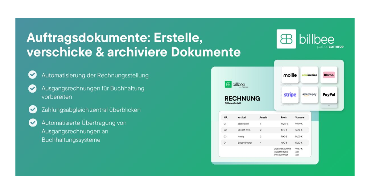 Billbee ist eine einfache und intuitiv zu bedienende, jedoch sehr umfangreiche Lösung zur Artikelverwaltung, Auftragsabwicklung und Automatisierung für E-Commerce Händler:innen, die mit ihren Produkten auf einem oder mehreren Kanälen aktiv sind. Mit der cloud-basierten Software können alle relevanten Prozesse im Handelsumfeld abgewickelt werden: Angefangen bei der Kommunikation mit Kund:innen, der automatisierten Erstellung verschiedener Auftragsdokumente, dem Versand, weiteren After-Sales Prozessen bis hin zur Verwaltung des Warenbestands. Die Prozesse werden entweder direkt in Billbee abgebildet oder über ein oder mehrere der mehr als 100 Schnittstellen zu Shopsystemen, Marktplätzen, Buchhaltungstools, Versand- oder auch Zahlungsdienstlei ...Mehr erfahren