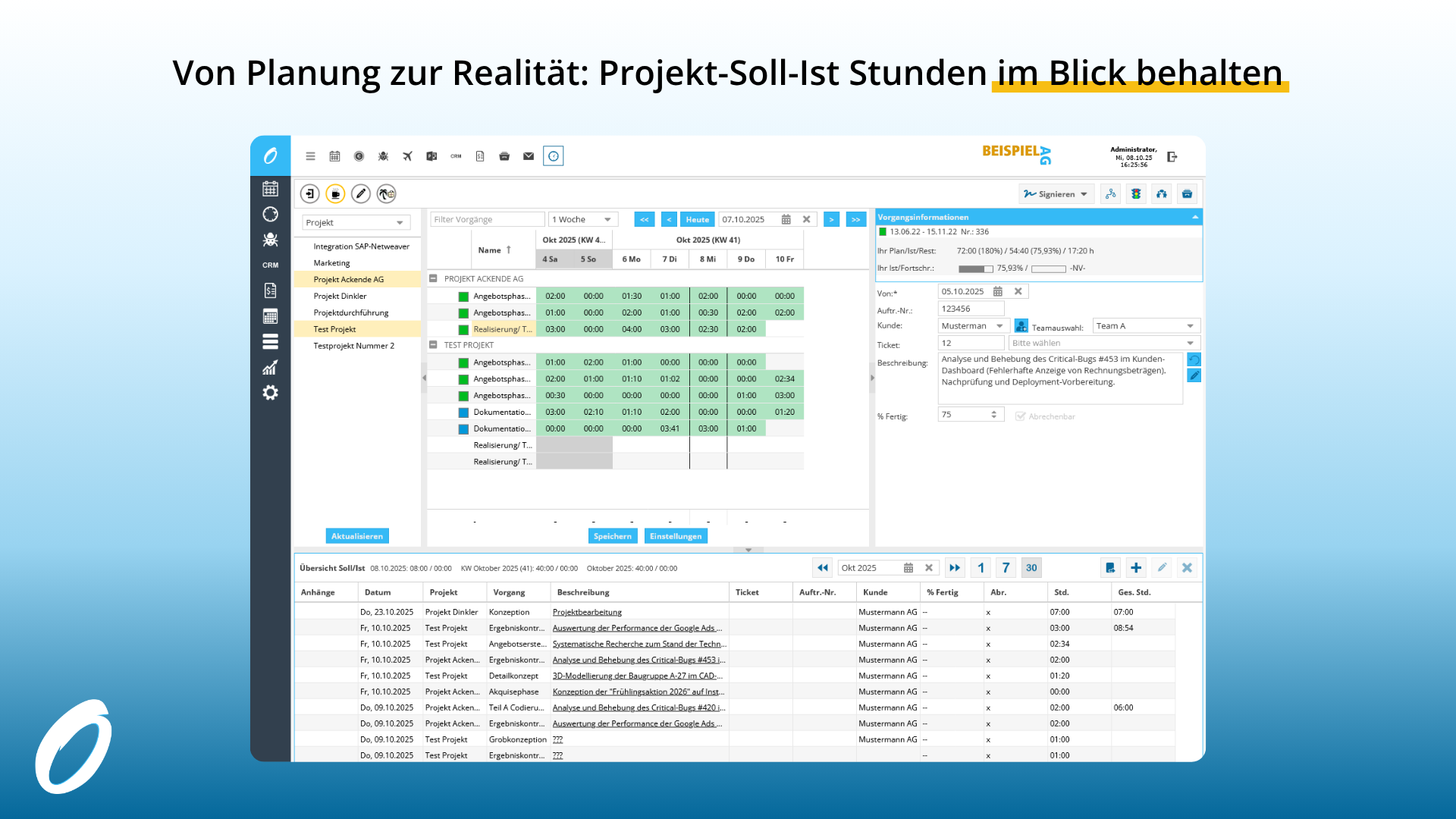 TimO® ist die ausgereifte Projekt-ERP Business Suite für Arbeitszeiterfassung, Projektzeiterfassung, Projektmanagement, Abrechnung, Personaleinsatzplanung, Ticketmanagement, Urlaubsverwaltung und Teamkalender entwickelt und gehostet in Deutschland. TimO basiert auf einem modularen System, das Unternehmen maximale Flexibilität bietet: Jedes Modul lässt sich einzeln einsetzen oder nahtlos zu einer umfassenden Lösung kombinieren. TimO digitalisiert und integriert zentrale Geschäftsprozesse – von der Zeiterfassung über die Projektplanung bis zur Abrechnung. So entfallen manuelle Arbeitsschritte, Systembrüche werden beseitigt und Führungskräfte erhalten in Echtzeit volle Transparenz über Ressourcen, Budgets und Projektfortschritt. Dank seiner Flexibilität und Skalierbarkeit eignet sich TimO für verschiedene Branchen und Unternehmensgrößen.