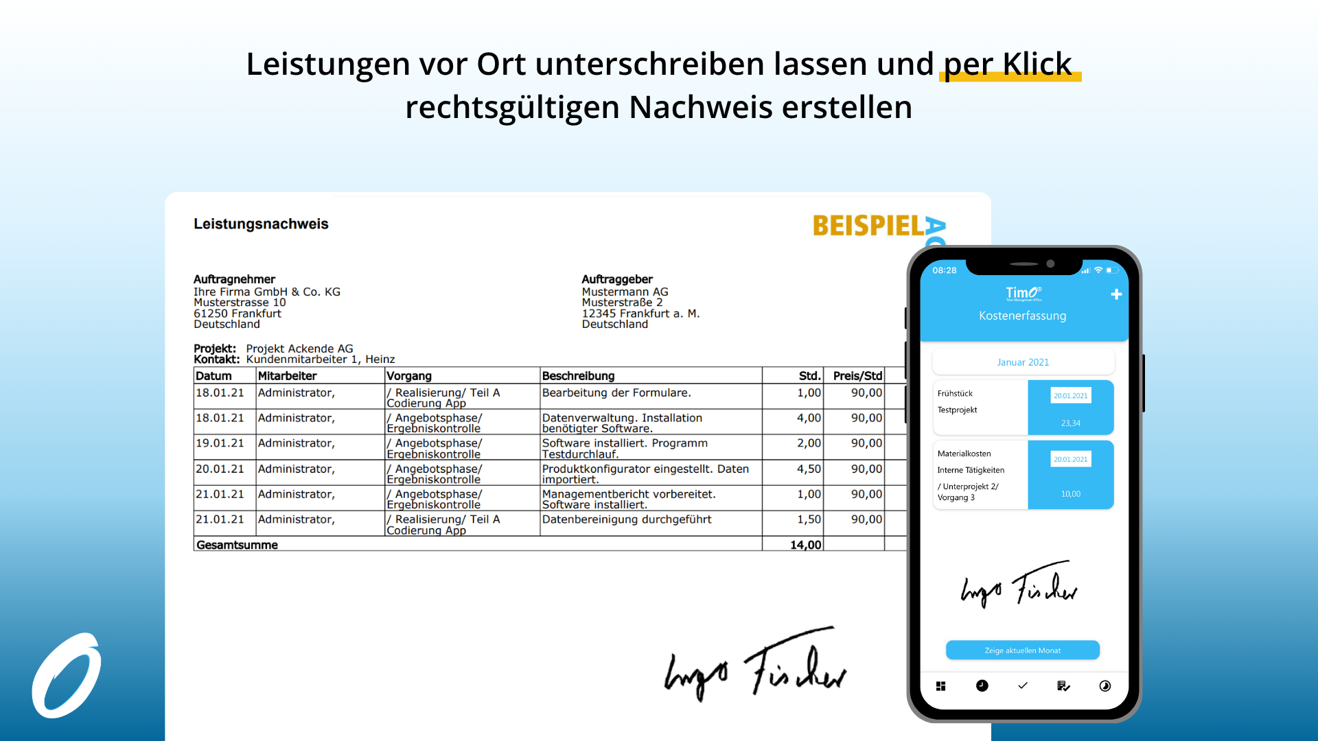 Bei unseren Projekten nutzen wir für die gesamte Zeiterfassung Timo. Man kann mit ein paar Klicks über einen Webbrowser oder eine App die Zeiten eingeben. Geht super schnell & einfach
